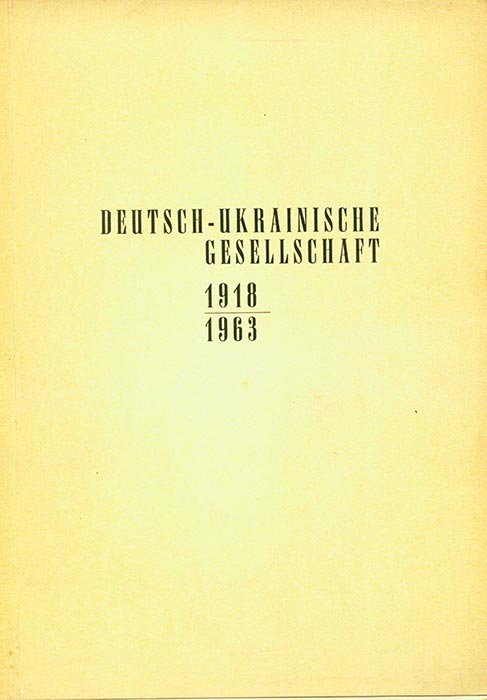 DEUTSCH-UKRAINISCHE GESELLSCHAFT 1918 - 1963