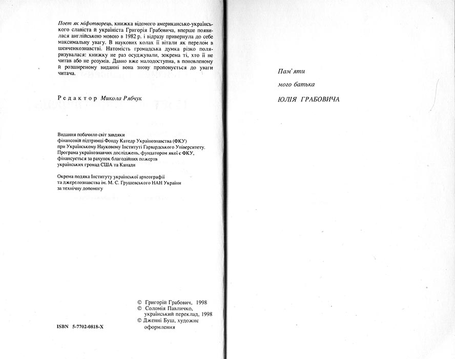 Григорій Грабович. Поет як міфотворець Григорій Грабович. Поет як міфотворець
