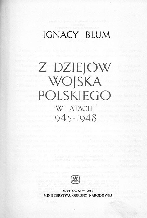 IGNACY BLUM. Z DZIEJÓW WOJSKA POLSKIEGO W LATACH 1945-1948