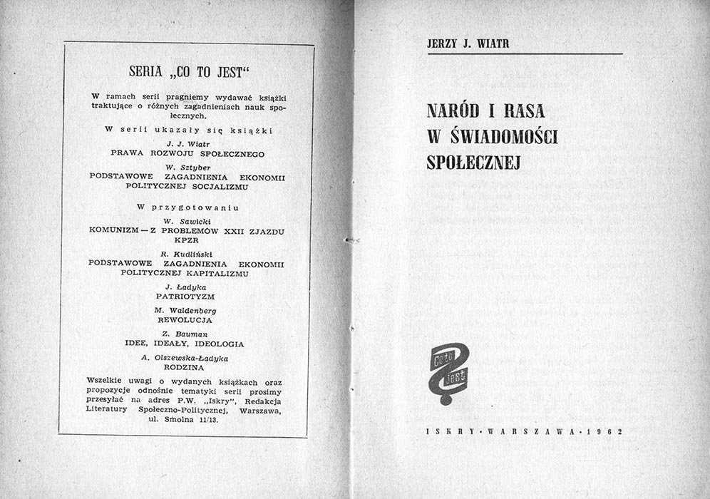 JERZY J. WIATR. NAROD I RASA W SWIADOMOSCI SPOLECZNEJ