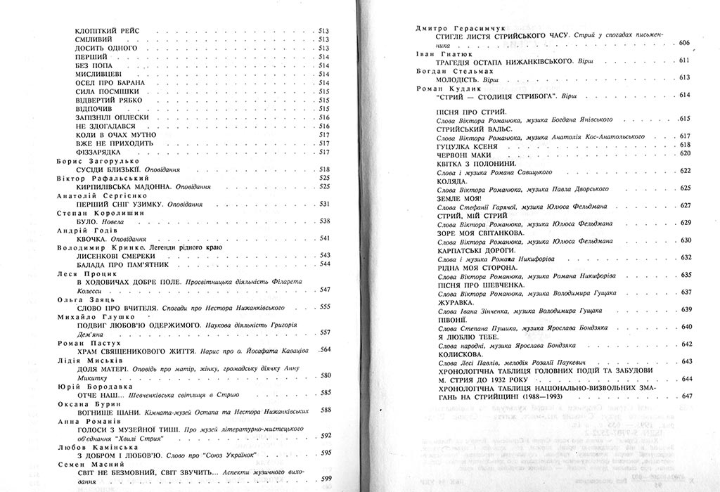 Хвилі Стрия: Сторінки з історії культури та національно-визвольного руху; Сучасне літ.-мист. життя.— Стрий: Щедрик, 1995.— 655 с., з іл.