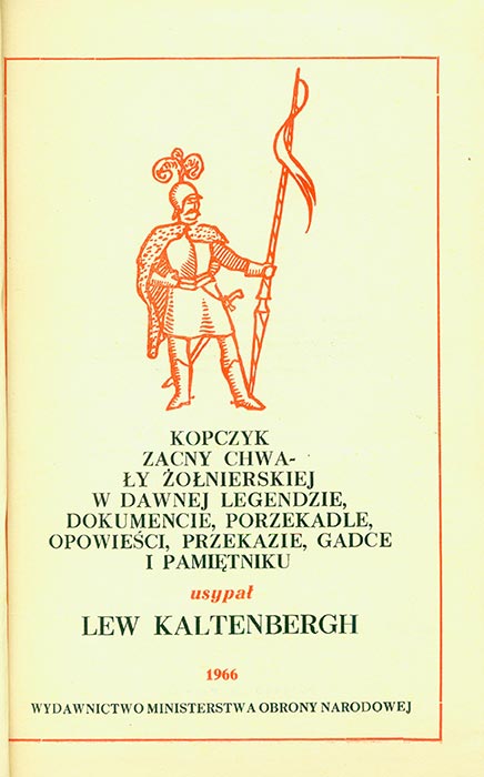 LEW КALTENBERGH. KOPCZYK ZACNY CHWALY ZOLNIERSKIEJ W DAWNEJ LEGENDZIE, DOKUMENCIE, PORZEKADLE, OPOWIESCI, PRZEKAZIE, GADCE I PAMIETNIKU