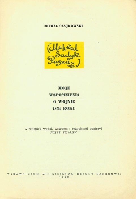 MICHAL CZAJKOWSKI. MOJE WSPOMNIENIA O WOJNIE 1854 ROKU
