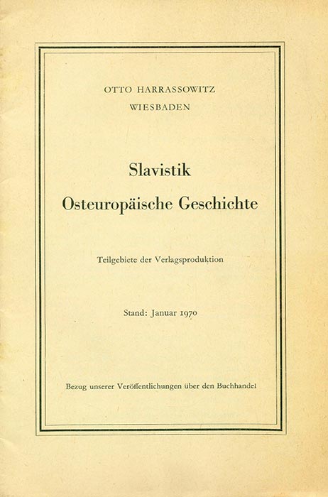 OTTO HARRASSOWITZ WIESBADEN. Slavistik Osteuropaische Geschichte