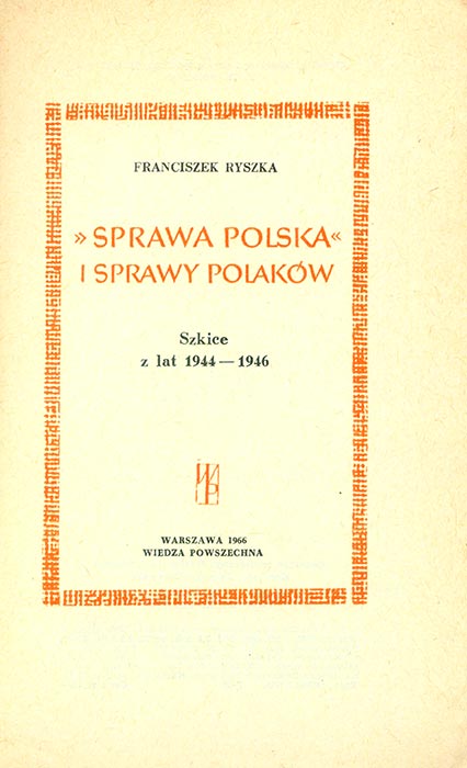 RANCISZEK RYSZKA. SPRAWA POLSKA. I SPRAWY POLAKOW RANCISZEK RYSZKA. SPRAWA POLSKA. I SPRAWY POLAKOW