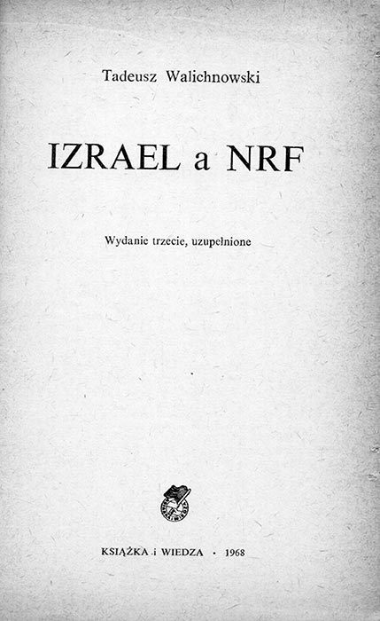 Tadeusz Walichnowski. IZRAEL a NRF