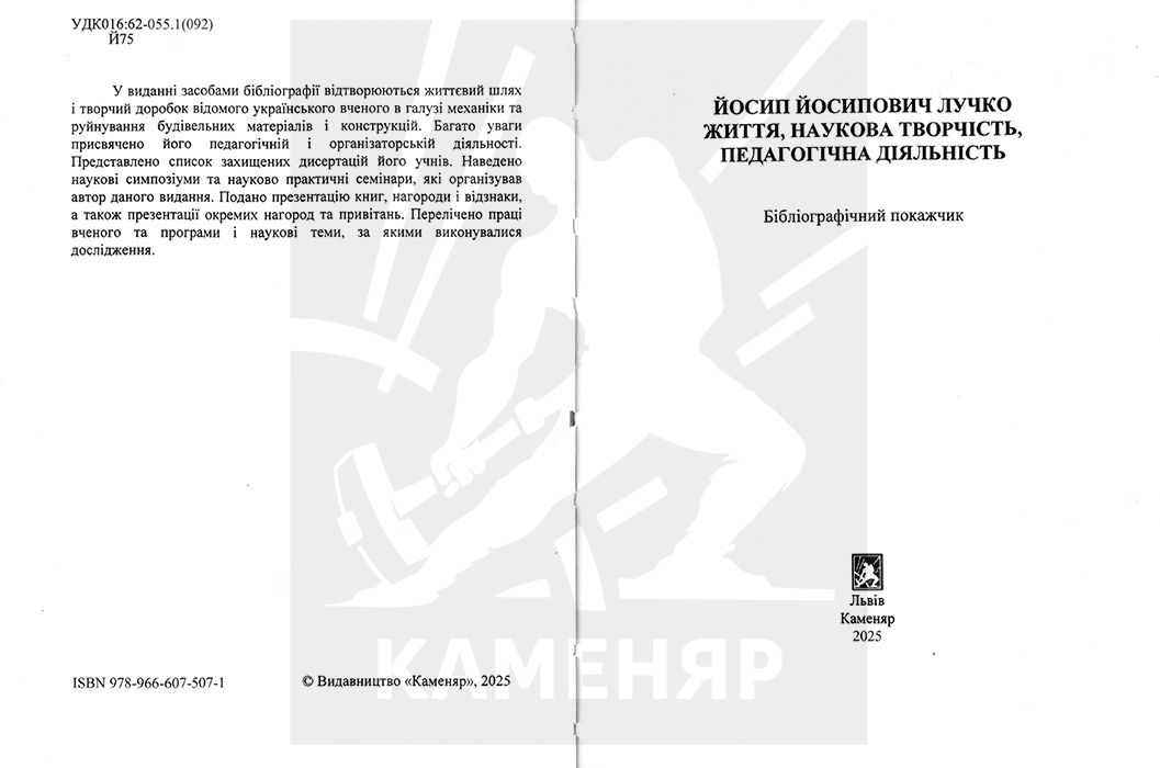 Лучко Й. Й. Дослідження і підсилення залізобетонних конструкцій при зведенні та тривалій експлуатації будівель і споруд: [Монографія] [текст] / Й. И. Лучко // - Львів: Каменяр, 2024. - 366 с: рис. 138, табл. 9.