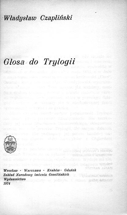 Wladyslaw Czaplinski. Glosa do Trylogii