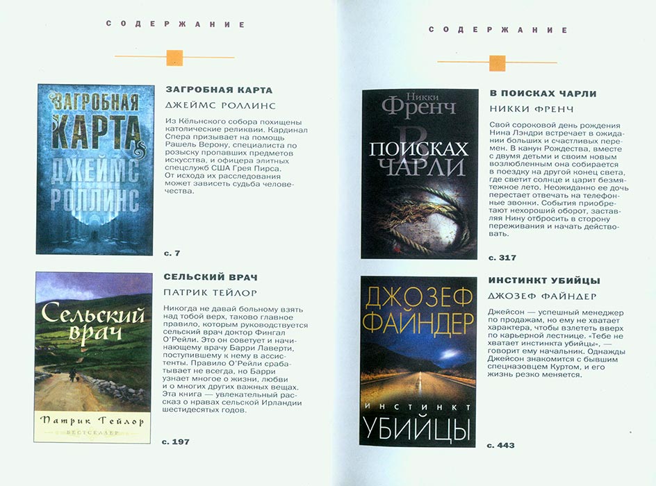 Вибрані романи - 5. Джеймс Ролінс - загробна карта. Патрик Тейлор - Сільський лікар. Нікі Френч - У пошуках Чарлі. Джозеф Файнаєр - Інстинкт вбивці. Річард Дайжест. - рос.