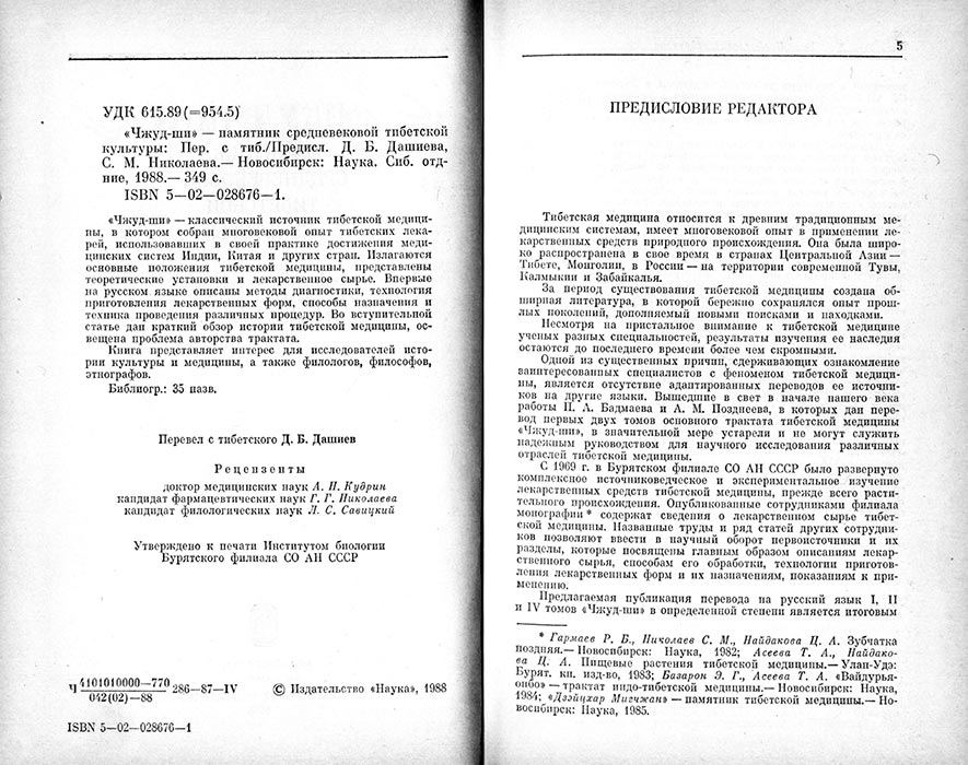 «Чжуд-ши» - пам'ятка середньовічної культури Тибету: Пер. з тиб. / Передисл. Д. Б. Дашієва, С. М. Ніколаєва. - Новосибірськ: Наука. Сиб. відд-ня, 1988. - 349 с. - рос