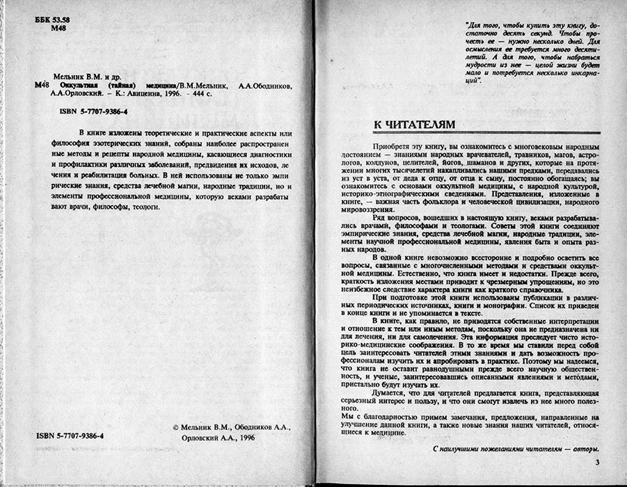 Мельник В.М. та ін Окультна (таємна) медецина / В М. Мельник, А.А.06одніков, А. Л.Орловський. – К.: Авіценна, 19%. – 444 с. - рос.