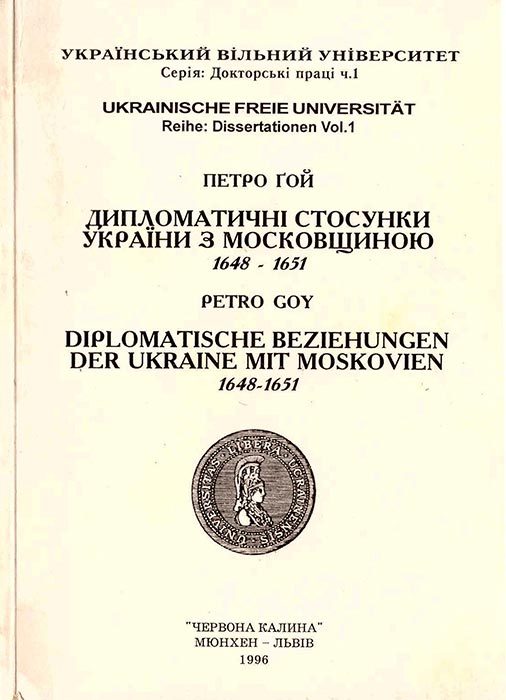 Книга професора доктора, колишнього ректора Українського Вільного університету у Мюнхені, Петра Ґоя, "Дипломатичні стосунки України з Московщиною. 1648 - 1651 рр." відкриває серію видань докторських дисертацій, започатковану УВУ в 1996 році. Водночас книга продовжує серію "Наукові скрипти" видавництва "Червона калина" під числом 3.